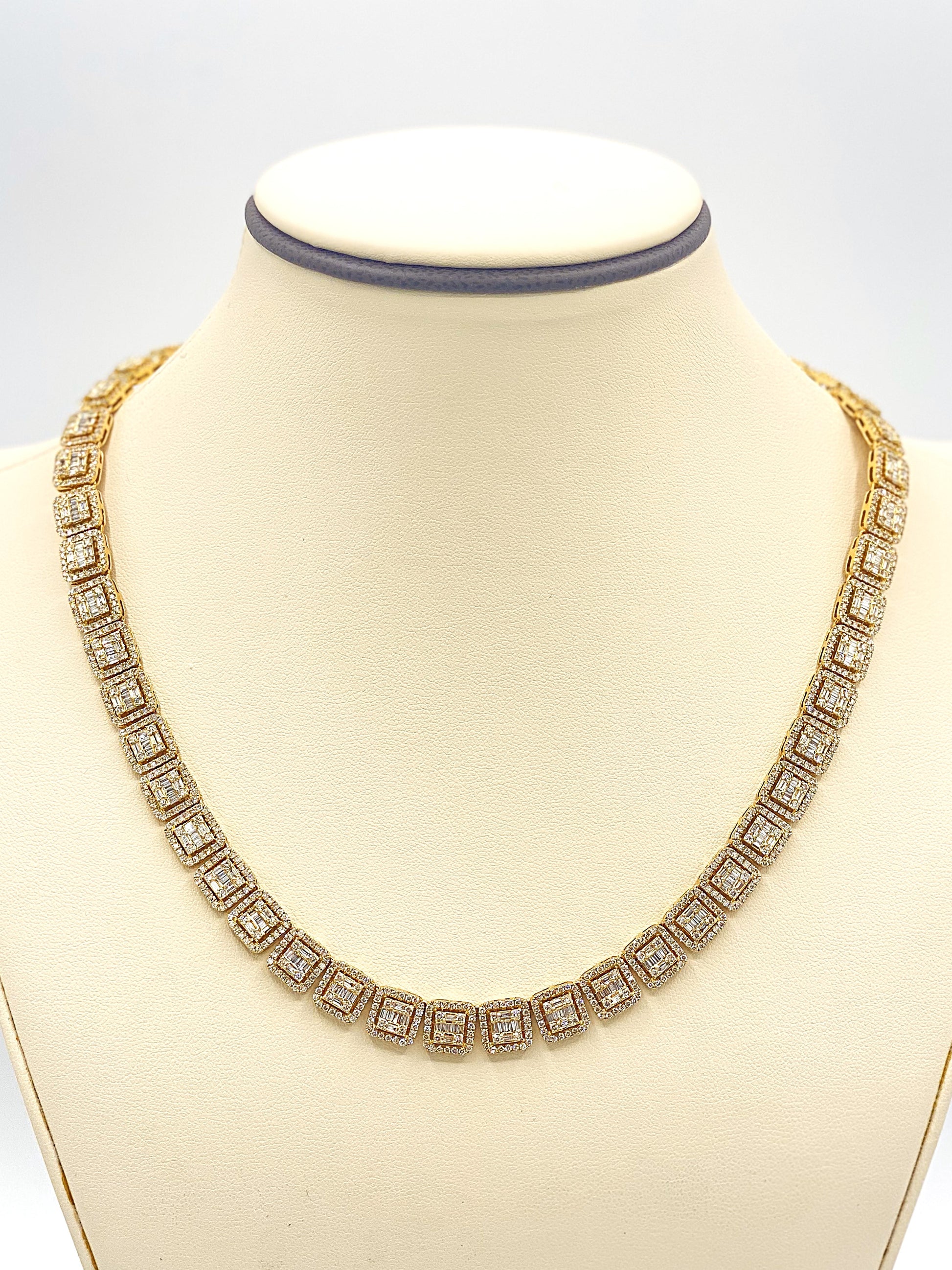 10K Yellow Gold Baguette Necklace 14.05CT Diamonds
